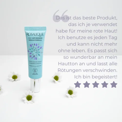 Empfohlene Anwendung: Morgens auf die gereinigte Haut auftragen, entweder als Ersatz für oder nach der Feuchtigkeitscreme. Tragen Sie mit den Fingern oder einem Pinsel eine kleine Menge gleichmäßig auf Ihr Gesicht auf und verblenden Sie sie, bis Rosalique sich Ihrem Teint anpasst. Für stärkere Deckkraft aufbaubar. Bei Bedarf im Laufe des Tages erneut auftragen. Rosalique eignet sich perfekt als getönte Feuchtigkeitscreme, farbkorrigierender Concealer oder als Grundierung unter dem Make-up. 6-8 Wochen lang täglich anwenden, um das volle Ergebnis zu erzielen. Rosalique 3 in 1 Anti-Rötung Gesichtscreme ist nicht komedogen, dermatologisch getestet und ästhetisch bewertet.
